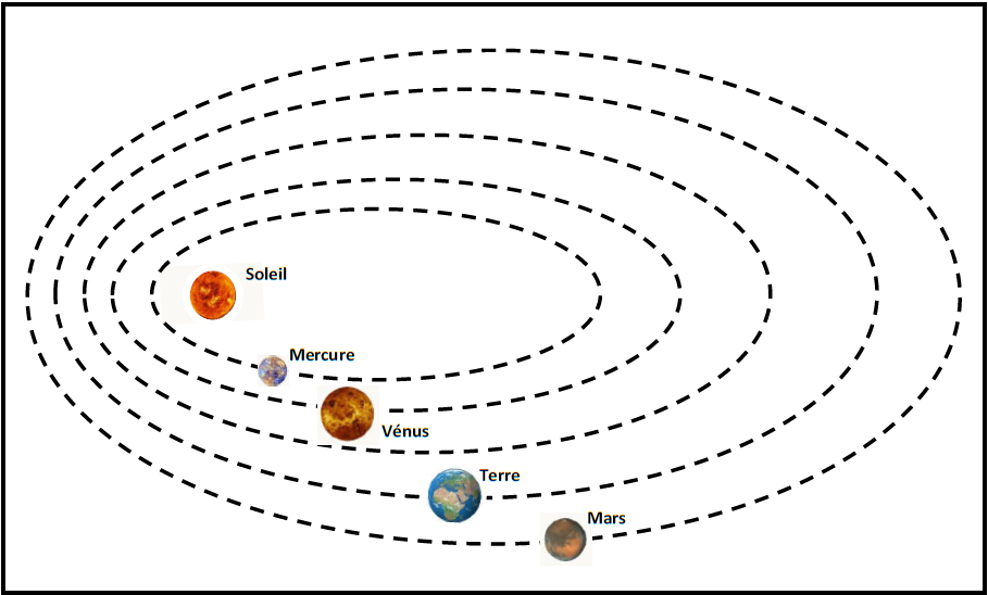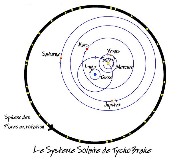 Description principale : La Terre est fixe au centre. Le Soleil tourne autour de la Terre et les autres planètes tournent autour du Soleil.